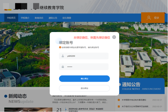 若未绑定微信,扫码确认后,会跳转至绑定界面。绑定账号后,下次登录可以直接微信扫码登录平台。