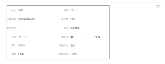 点击查看学籍信息,核对个人学籍信息是否正确,学籍信息无误可点击确认,若有误可联系教务老师进行修改。