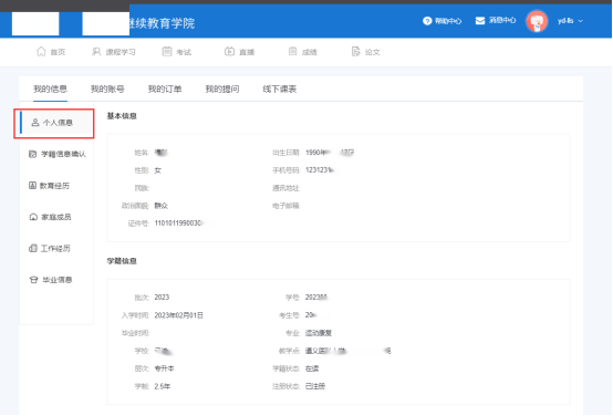 点击【个人信息】,可查看基本信息和学籍信息。