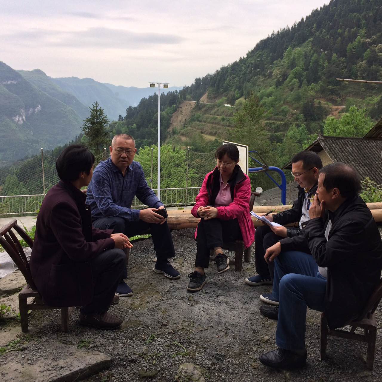 经过1个多小时的车程,越过崎岖陡峭的山路,田筱鸿一行终于来到石光周家中。走进石光周家,大家在其堂屋门口的小坪上围坐交谈。首先,对石光周一家传达了上级和学校今年扶贫的相关政策和具体要求,要实现精准扶贫,达到脱贫,以迎接今年十月份省里要求的脱贫验收检查。大家细致询问了石光周一家现在的生产生活情况,耐心地宣传搬迁政策,积极鼓励支持其搬迁。针对他们对搬迁后的各种顾虑,大家帮其分析利弊,耐心地反复宣传,最后石光周一家答应搬迁。之后,李文汉老师现场指导石光周有关经济苗木的栽培嫁接技术。大家共同想办法、出主意、分析政策优惠,积极支持其女儿的自主创业工作;并想办法资助改善屋前房后的居住生活环境,将屋前小坪进行水泥硬化处理。驻村干部吴鸿俊老师参加了该次扶贫调研。