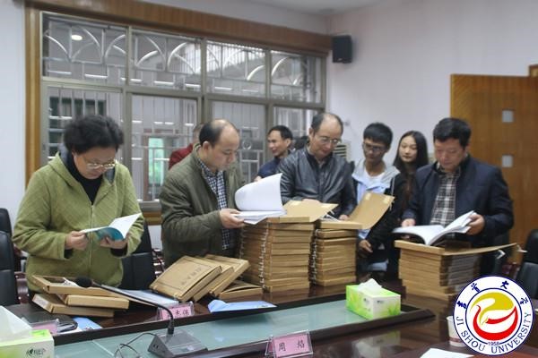 汇报结束候,专家组一行进行了现场资料查阅与审核,并指出服务中心在于服务,学校拥有雄厚的生源优势,建议我校办自考助学班,为武陵山区服务,并提出指导性意见。